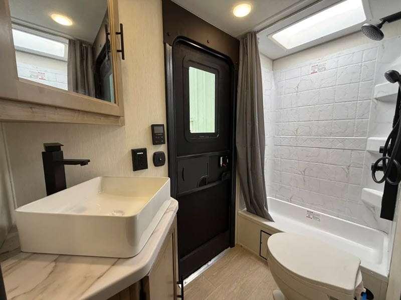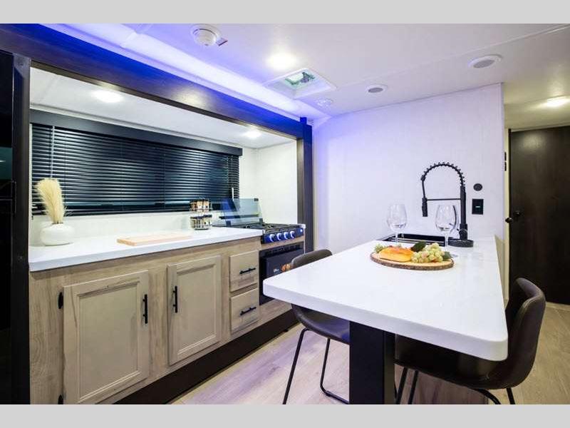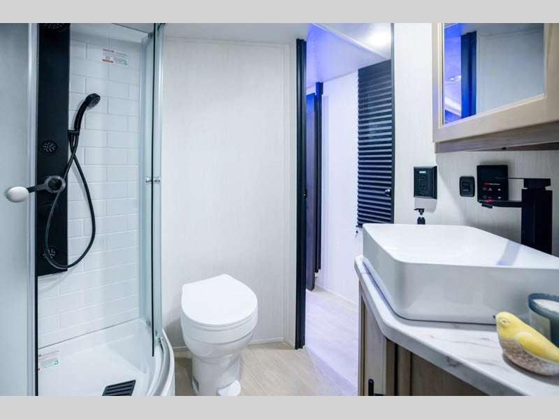 Sleeps 4 Slides 1 Length 33 ft 2 in Ext Width 8 ft Ext Height 10 ft 8 in Int Height 0 ft Hitch Weight 875 lbs GVWR 7875 lbs Dry Weight 6468 lbs Cargo Capacity 1407 lbs Fresh Water Capacity 52 gals Grey Water Capacity 38 gals Black Water Capacity 38 gals Furnace BTU 20000 btu Available Beds RV King Refrigerator Type 12V Cooktop Burners 3 Number of Awnings 1 Water Heater Type Tankless AC BTU 15000 btu Cargo Deck Size 0 ft Awning Info 14' Full Length Power w/LED Light Strip Axle Count 2 Shower Type Tub/Shower Combo Solar Wattage 200 watts Similar Floorplans