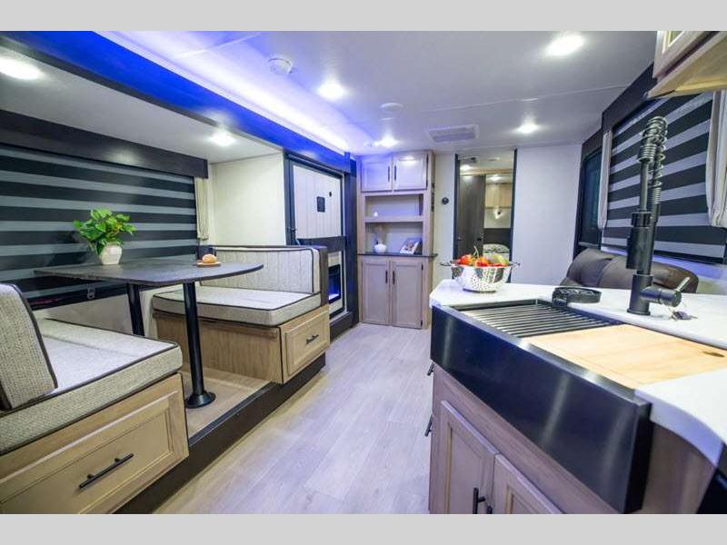 Sleeps 7 Length 0 ft Ext Width 0 ft Ext Height 0 ft Int Height 0 ft Furnace BTU 20000 btu Number Of Bunks 2 Available Beds RV King Refrigerator Type 12V Number of Awnings 1 Water Heater Type Tankless AC BTU 15000 btu Cargo Deck Size 0 ft Awning Info 15' Full Length Power w/LED Light Strip Axle Count 2 Shower Type Tub/Shower Combo Solar Wattage 200 watts Similar Floorplans