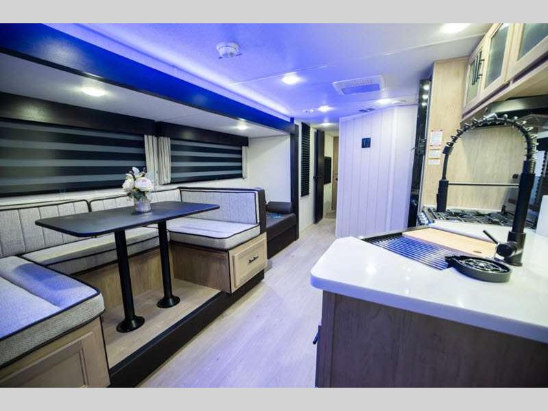 Sleeps 9 Slides 1 Length 23 ft 9 in Ext Width 8 ft Ext Height 10 ft 6 in Int Height 0 ft Hitch Weight 760 lbs GVWR 7760 lbs Dry Weight 6573 lbs Cargo Capacity 1187 lbs Fresh Water Capacity 52 gals Grey Water Capacity 38 gals Black Water Capacity 38 gals Furnace BTU 20000 btu Number Of Bunks 2 Available Beds RV King Refrigerator Type 12V Cooktop Burners 3 Number of Awnings 1 Water Heater Type Tankless AC BTU 15000 btu Cargo Deck Size 0 ft Awning Info 15' Full Length Power w/LED Light Strip Axle Count 2 Shower Type Tub/Shower Combo Solar Wattage 200 watts Similar Floorplans