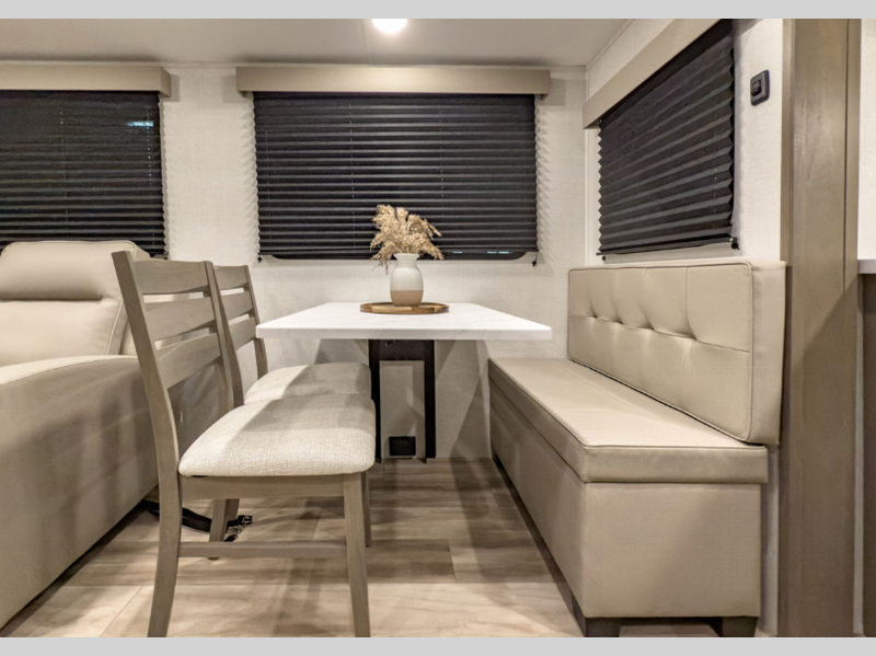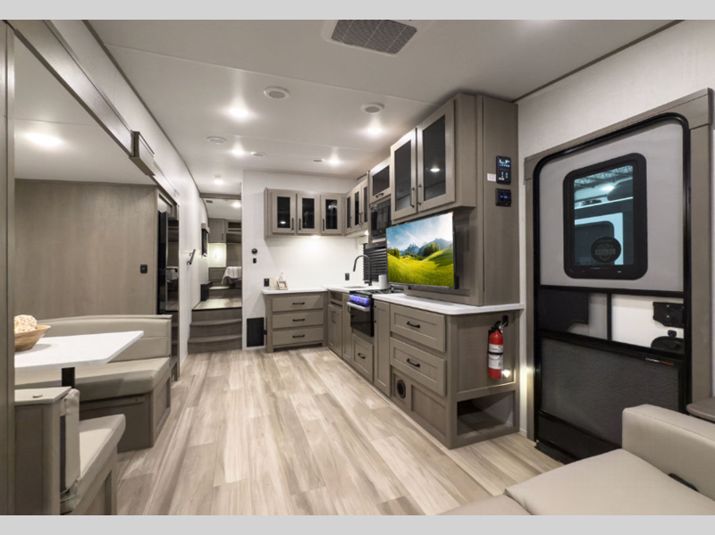 You will be able to enjoy your fifth wheel for years to come since there are full laminated walls, a double insulated roof, front cap, and floor, plus gel coated exterior sidewalls. The Arctic 4-Seasons Protection Package will allow you to camp during the colder months or even go full-time, and the Solar Package will provide off-grid capabilities! There are two additional packages; the Peace of Mind Package and Ultimate Power Package that include residential cabinetry and pleated shades, a "one-touch" electric awning with LED lights, and a Compass Connect system to stay informed on all your units functions!